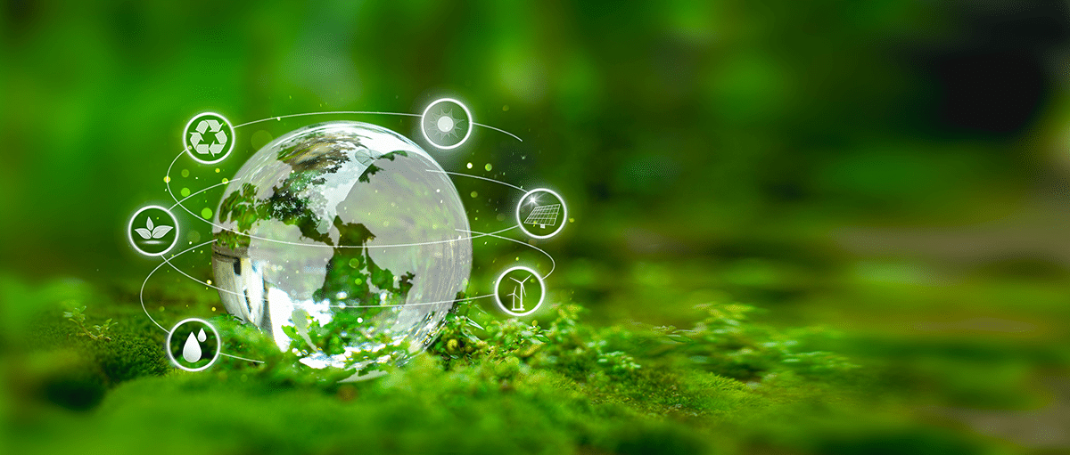 Kristallgloben med hållbar utveckling. Affärssamarbete för World hållbar miljö social governance koncept. Förnybara och hållbara energikällor.